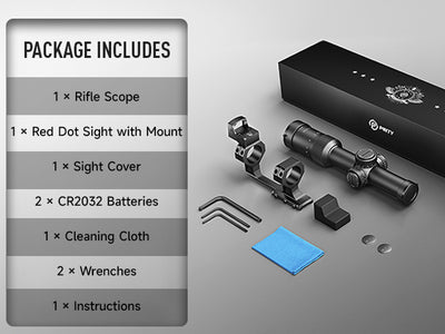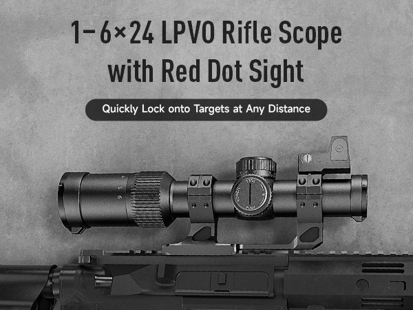 Pinty's 1-6x24 mm LPVO Riflescope with red dot sight and mount delivers fast target acquisition for close-range shooting and precise accuracy at long distances, ideal for hunting, tactical shooting, or range practice
