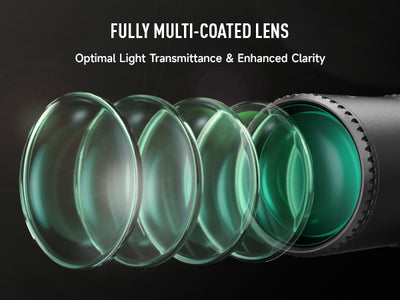 1-6x24 LPVO Riflescope features fully multi-coated lenses for enhanced light transmission, providing clear, bright views, and reduce reflections and glare, improving contrast and color accuracy. This ensures sharp, precise targeting in any lighting conditions