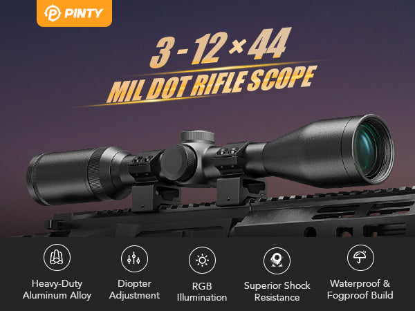 Equipped with a 44 mm multi-coated green lens, Pinty's SFP rifle scope delivers bright, clear images in any light. The 3-12x magnification, along with windage and elevation controls, allows for precise adjustments, whether you are shooting close or far away. Parallax correction, ranging from 10 yards to infinity, ensures consistent focus for improved accuracy. Built to withstand the elements, the airsoft scope features a tough 6063 aluminum alloy construction that is nitrogen-filled and shockproof. This versatile gun scope comes with two mounts, allowing for easy attachment to standard 20 mm Picatinny or Weaver rails, making it ideal for airsoft, air rifles, and more.