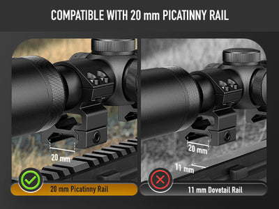 This SFP Airsoft Optical scope comes with 2 scope mounts to fit snugly on any standard 20 mm Picatinny or Weaver rail, perfect for air rifles, airsoft guns, shotguns, pellet guns, and more