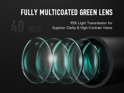The 40 mm fully multicoated green-tinted lens on this hunting scope improves light transmission, providing crisp, clear views with less glare, even in low-light conditions