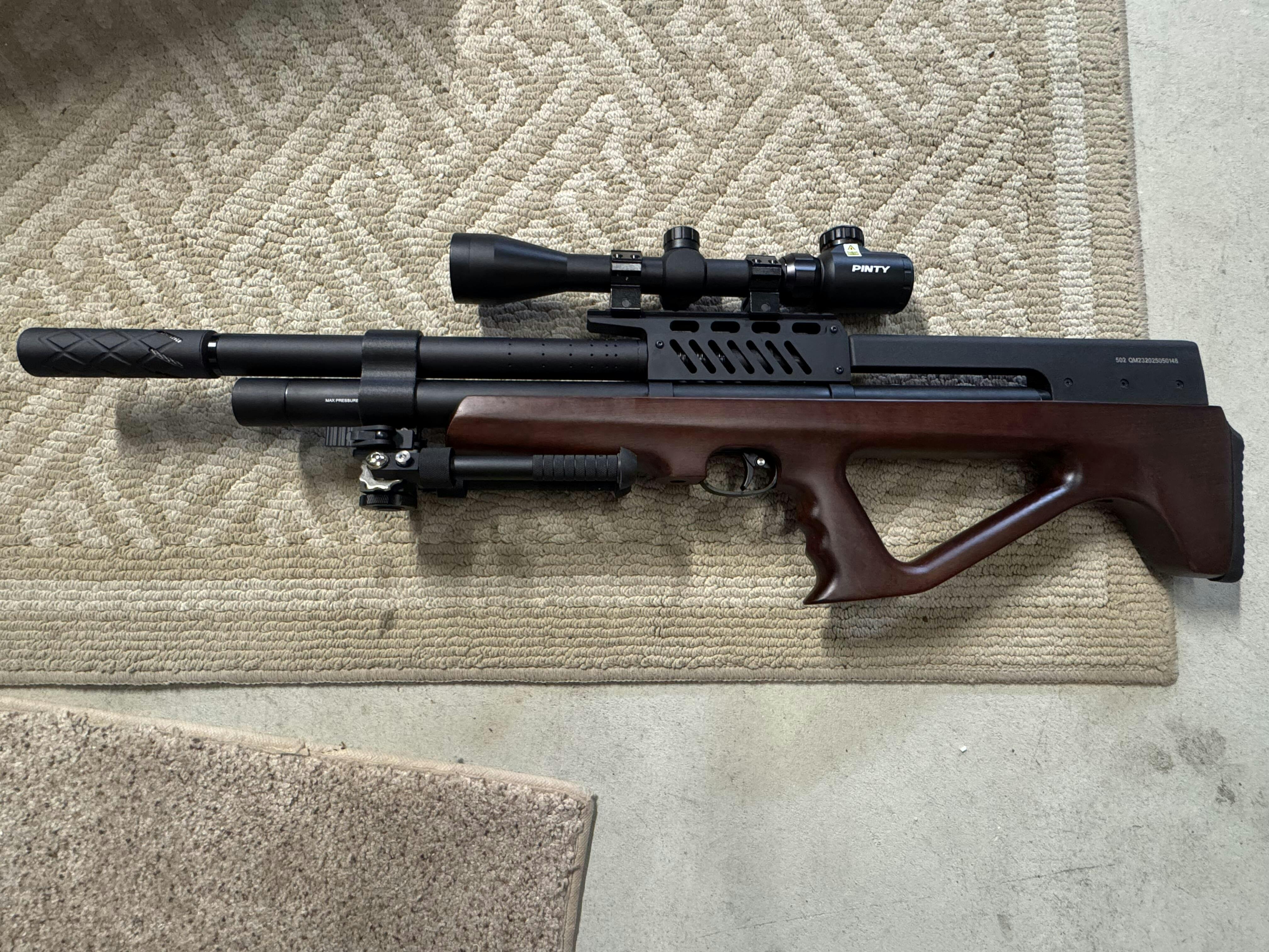 Pinty's PCP air rifle fires .22 caliber pellets at speeds of up to 800 fps, offering the accuracy and impact you need, while the 9-pellet magazine keeps you in the action longer, making it ideal for target shooting and small game hunting