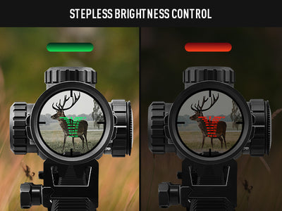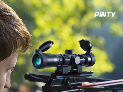 Pinty's 1.5-4.5x32 SFP crossbow scope offers you a clear field of view in any setting thanks to its precise ballistic reticle, convenient diopter adjustment, and stepless red and green illumination.