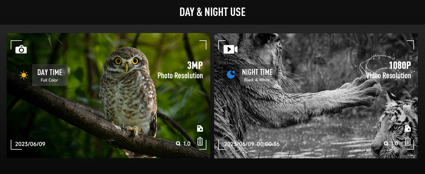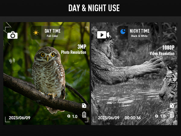 Enjoy exceptional image clarity with 1080P video recording, 3 MP image resolution, and 4x digital zoom, delivering vivid daytime color images and sharp black-and-white visuals at night