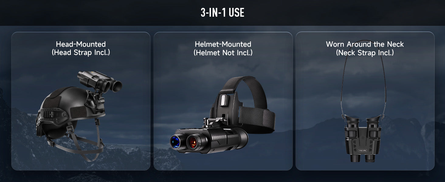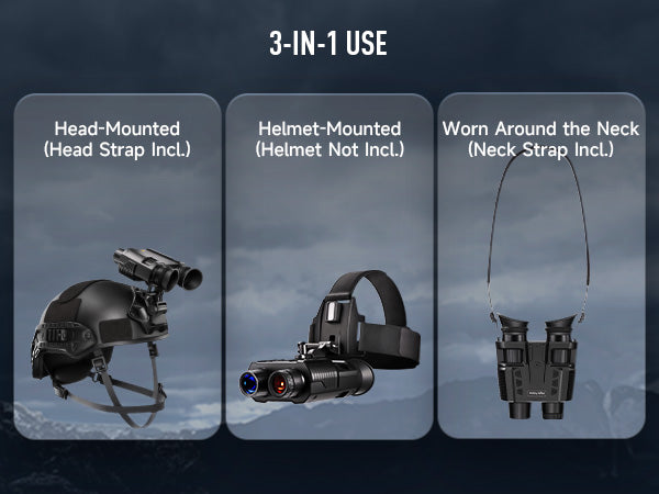 Designed for maximum versatility, these professional binoculars can be used head-mounted, helmet-mounted (helmet not included), or handheld using the included neck strap, adapting to various outdoor scenarios