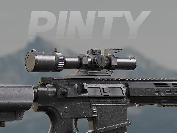 With 1-8x magnification and a throw lever, Pinty's FFP rifle scope transitions smoothly from close-range to mid-distance targets. Its fully multi-coated 24 mm green lenses deliver high-contrast views at any zoom level