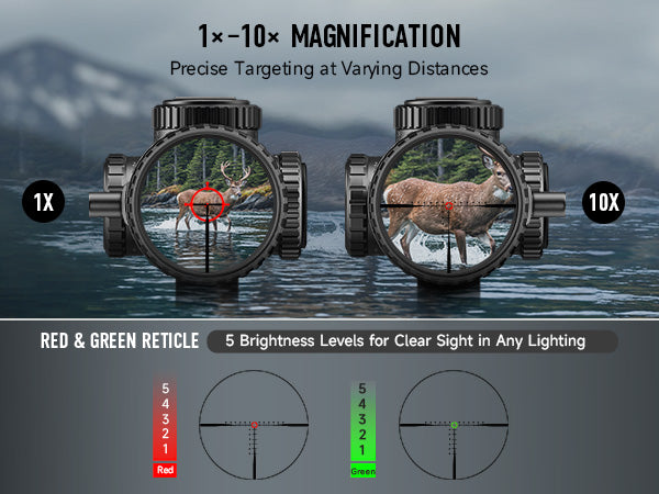Get Closer, Aim Sharper: With 1-10x magnification and a throw lever, Pinty's FFP rifle scope transitions smoothly from close-range to mid-distance targets. Its fully multi-coated 28 mm green lenses deliver high-contrast views at any zoom level